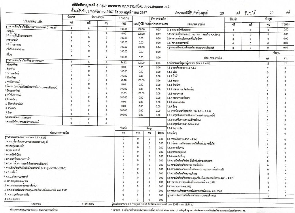 2. สถิติคดีอาญา 4 กลุ่ม ประจำเดือน พฤศจิกายน 2567