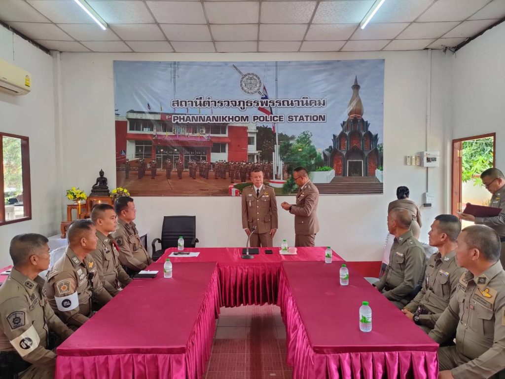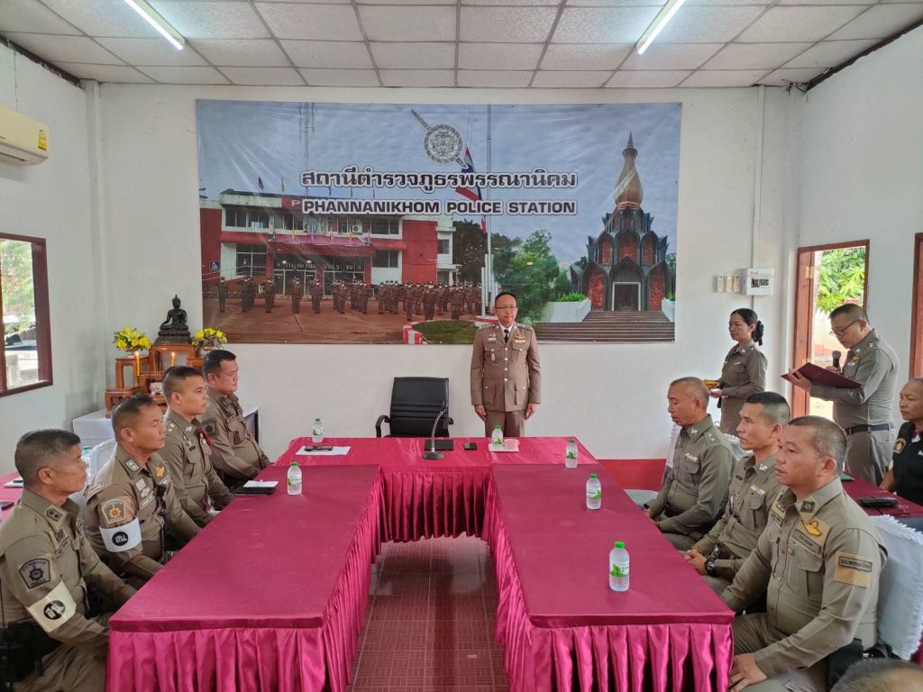 วันที่ 13 มีนาคม 2568 เวลา 09.00 น. พ.ต.อ.วีระยุทธ ใบภักดี ผกก.สภ.พรรณานิคม ได้ทำพิธีประดับ ยศ แสดงความยินดี กับข้าราชการตำรวจที่ได้รับการเลื่อนยศ ต้อนรับผู้ที่ดำรงตำแหน่งใหม่ ชี้แจงข้อราชการ และกำชับการปฏิบัติ ในการประชุมประจำเดือน มีนาคม 2568
