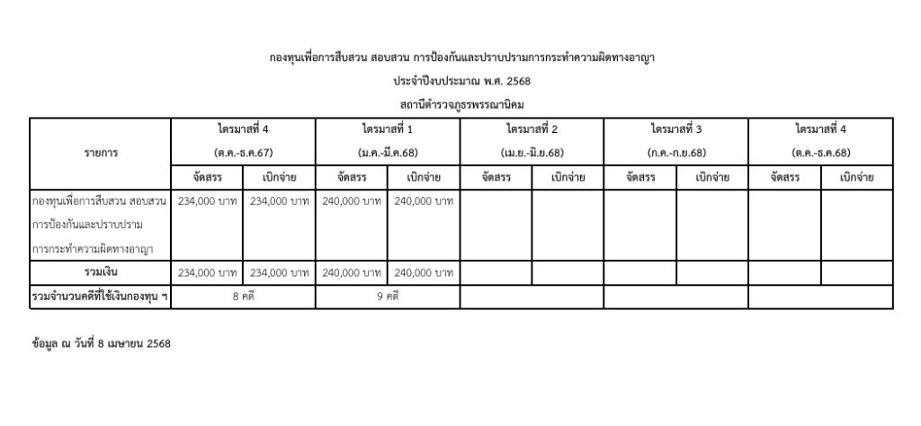 ข้อมูลเงินกองทุนเพื่อการสืบสวน สอบสวน การป้องกันและปราบปรามการกระทำความผิดทางอาญา(ไฟล์ Exel)(คลิ๊ก)